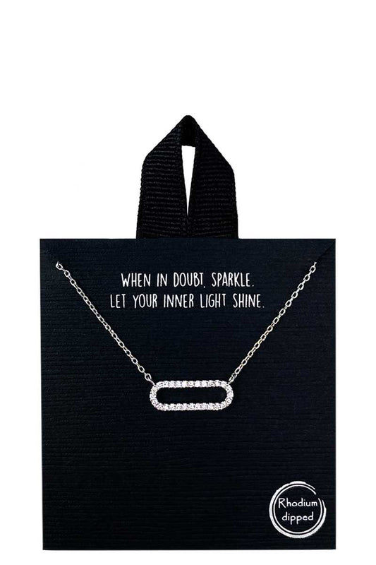 18k Gold Rhodium Dipped Rhinestone Oval Pendant Necklace