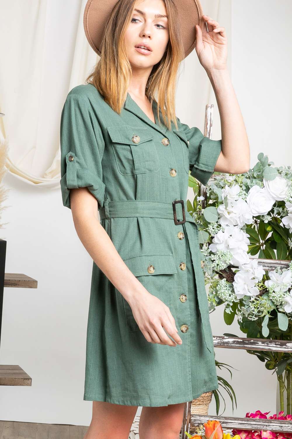 Drop shoulder with saist tie belted dress 80% Cotton 20% Linen