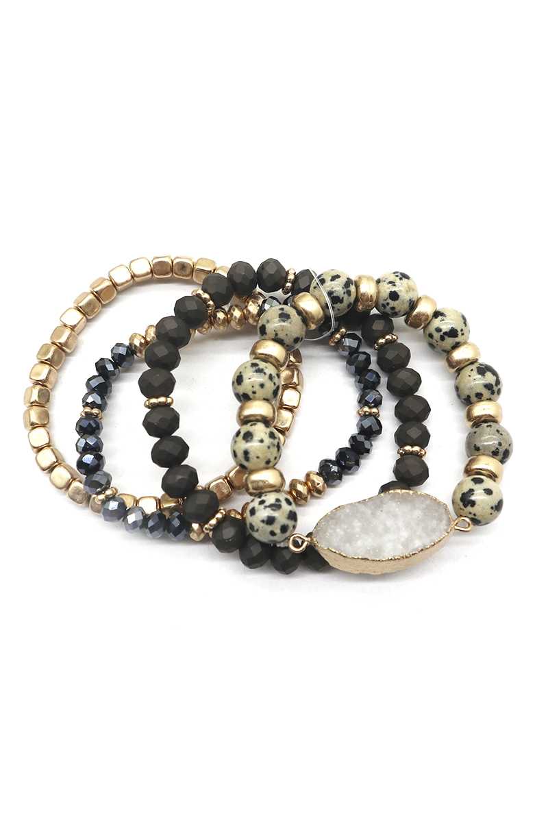 CRYSTAL METAL DRUZY STONE BEAD STRETCH BRACELET SET