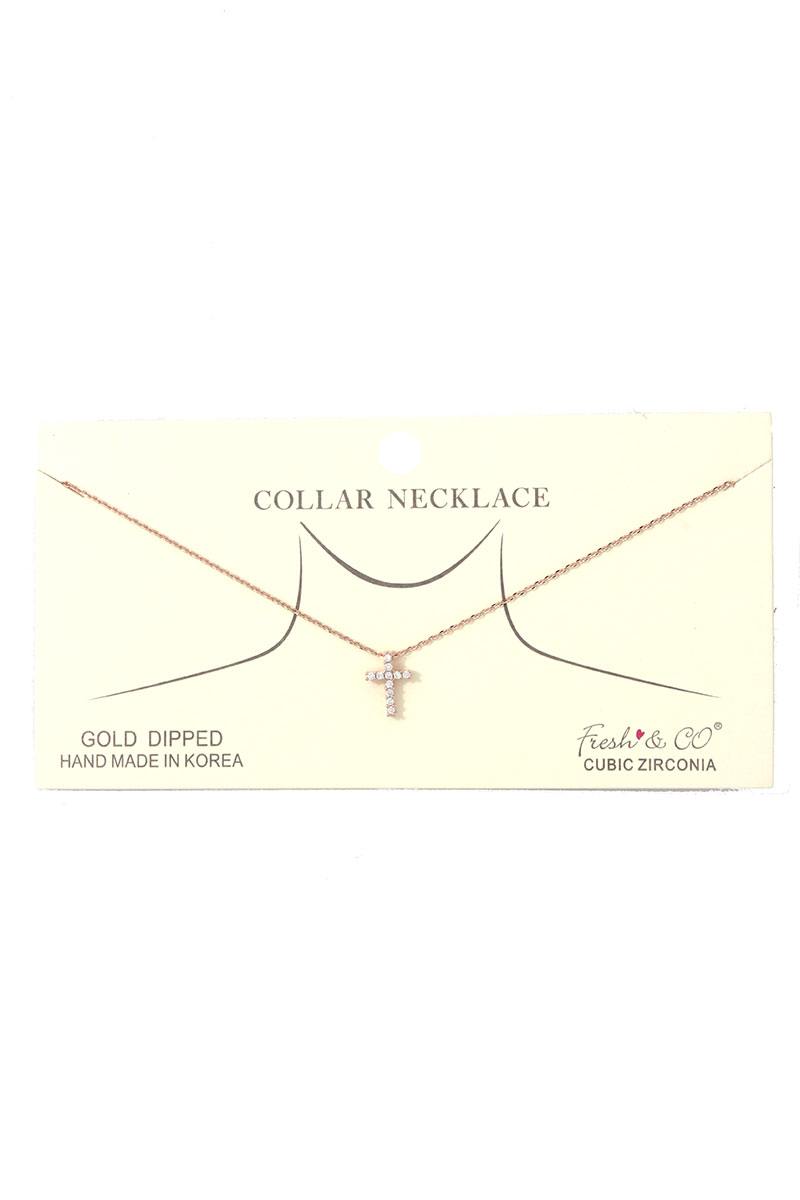 DAINTY RHINESTONE CROSS CHARM COLLAR NECKLACE