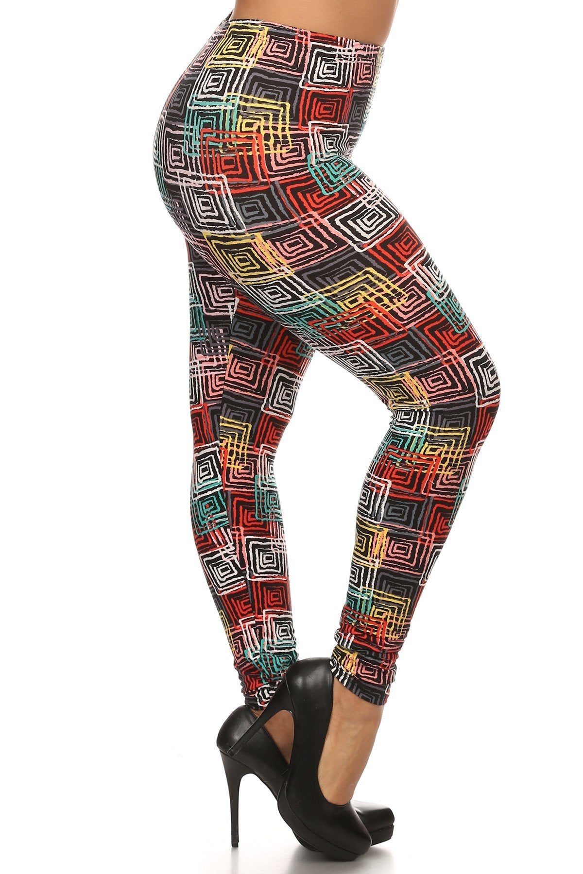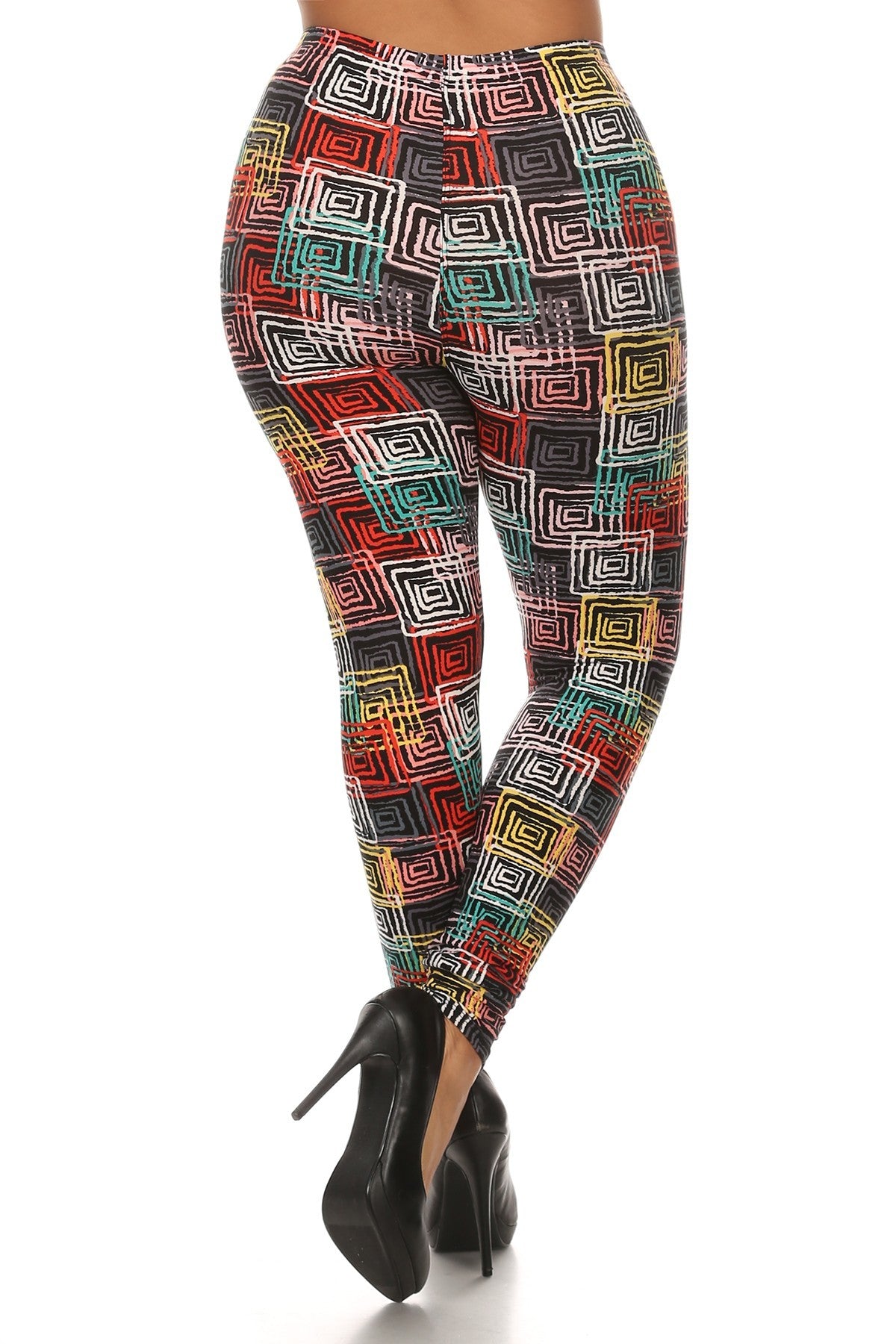 Abstract Geometric Printed Knit Legging With Elastic Waistband, And High Waist Fit