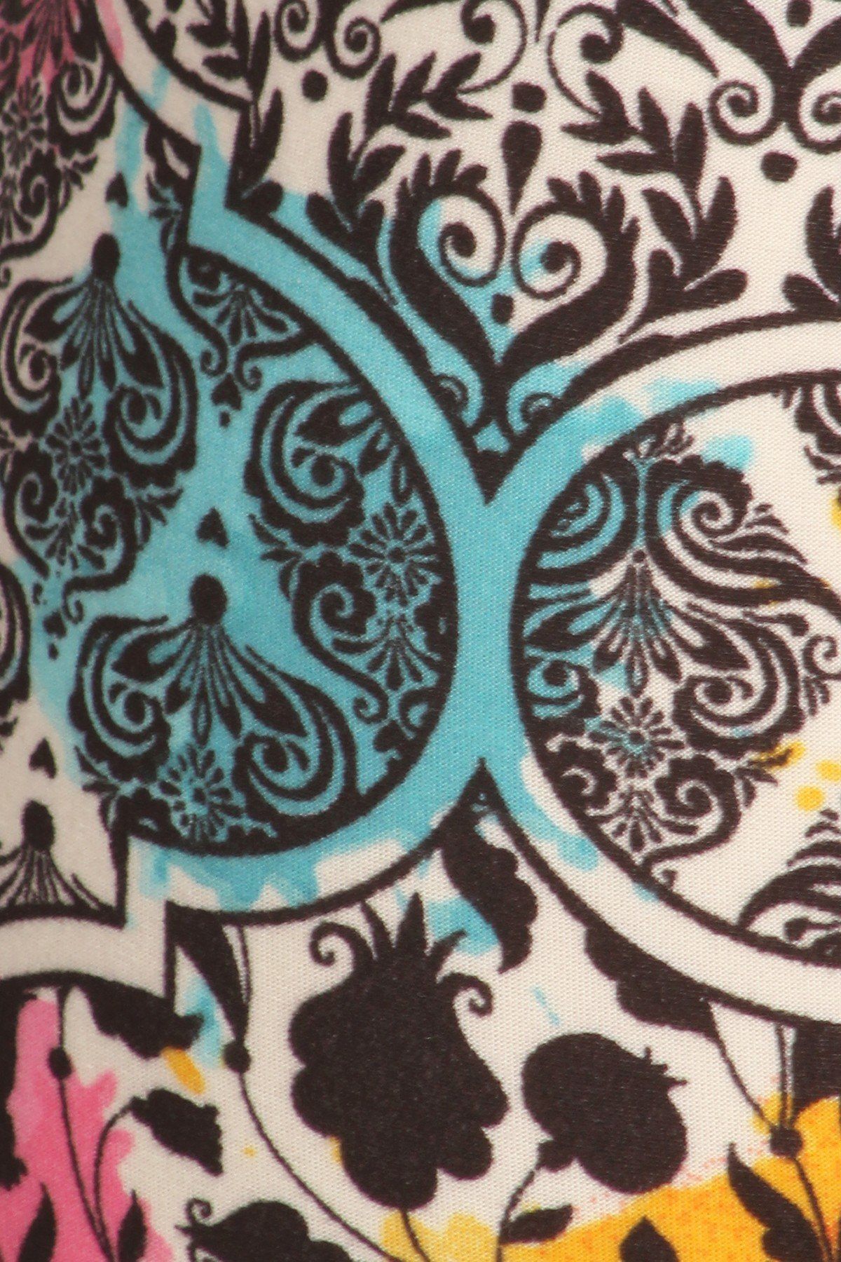 5-inch long YOGA style banded lined damask pattern printed knit legging with high waist