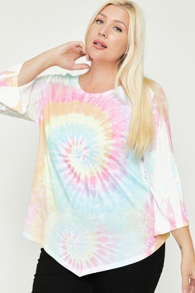 Cheetah print top featuring a round neckline and 3/4 bell sleeves