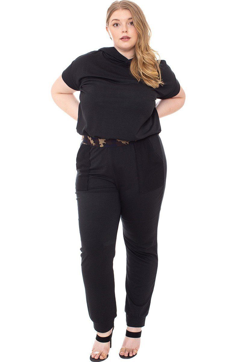 CAMOUFLAUGE DETAILED JOGGER PLUS SIZE SET HOODIE DROP SHOULDER SHORT SLEEVE SKINNY BOTTOM POCKET